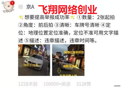 大家好,我是飞翔!今天分享一个关于违停的赚钱小项目,项目本身是合法的,但是可能有些人良心上会过意不去,比如飞翔自己就做不了这类的赚钱项目,不过本次目的旨在分享,至于你做不做这个项目,取决于个人,每个人都没有每个人的原则。