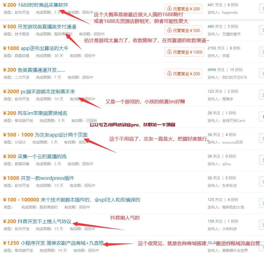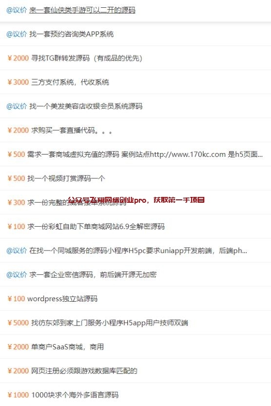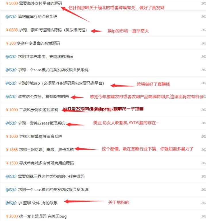上面这几张图片只是一部分而已,这个站点每天还有各种发布的交易需求,可谓层出不穷,但是有一点我们可以肯定,这些需求的背后都蕴含着一座巨大的市场、而且大概率还是一个暴力的赚钱项目