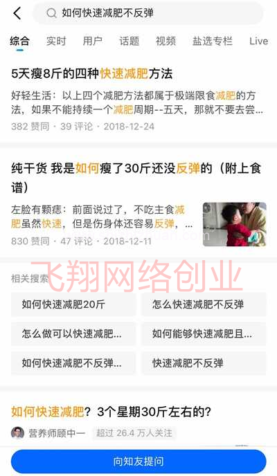 当我们在搜索框输入问题时,会出来很多内容,这些内容包含平台广告,问题答案等等。比如我在知乎,搜索:如何快速减肥?