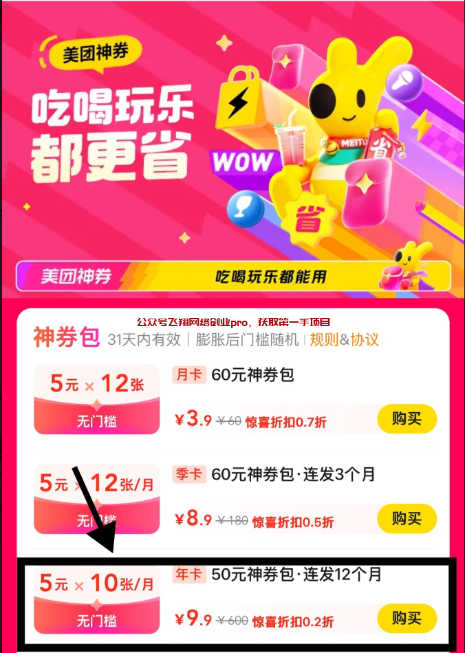 有人可能直接会在官方买券,其实不要去官方下单,现在可以借助第三方平台去推广这个美团9.9的年度神券包,还有佣金可以拿