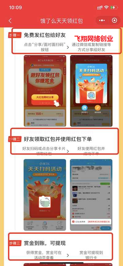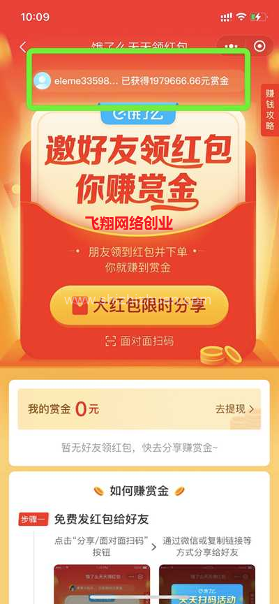 这里看不到全部的排行,感兴趣的可以去饿了么打开看一下,根据上图显示的数据,看见了某一个用户获得的佣金是190W+,这个玩法就跟之前的支付宝红包一样,使用越多获得越多,点击进入首页人人即可参与,相当于一次饿了么拉新活动,具体的参与玩法,我们可以参照下图: