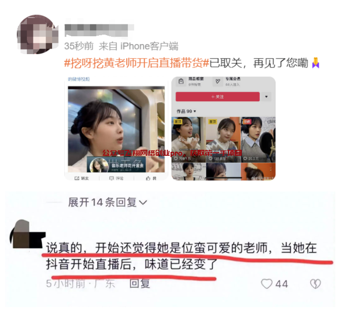 很多人对于黄老师的期望值非常高,甚至将她视为完美的化身。他们希望黄老师能够一直保持这种美好清纯的形象,有的人甚至把她当作了梦中情人。因此,当黄老师出现了直播带货的这种商业行为时,这些网友可能会觉得她已经不再完美了,不再清纯了,就开始转为攻击和谩骂了