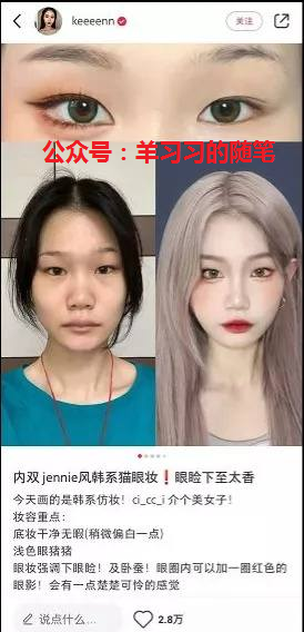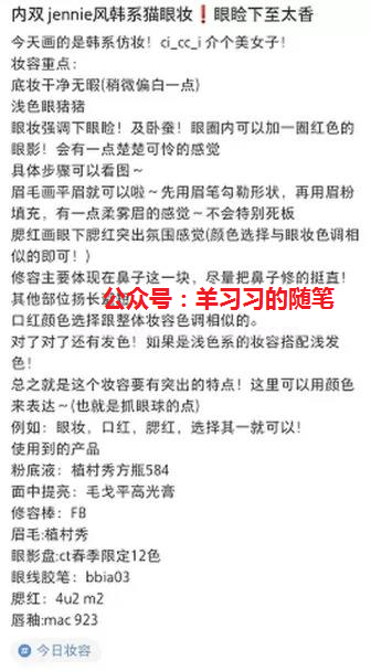 标题“内双Jennie风韩系猫眼妆”直接点明这个笔记的主打内容,能够在最大程度上打通和用户之间的沟通。