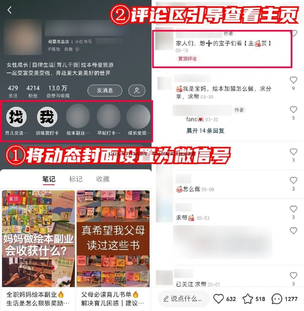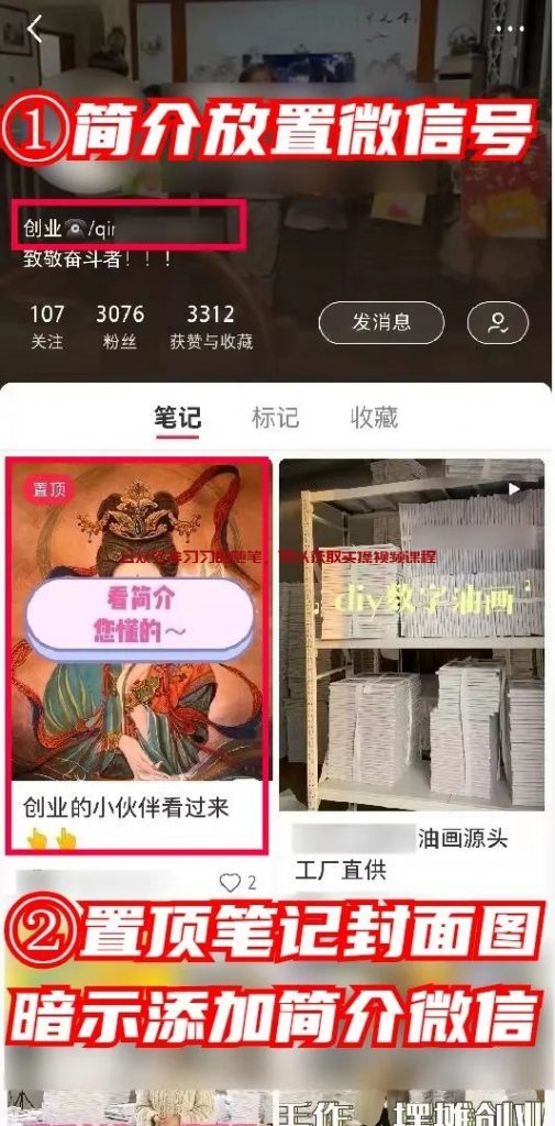 账号首页简介备注微信号,通过置顶笔记暗示添加简介微信。