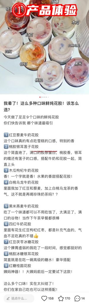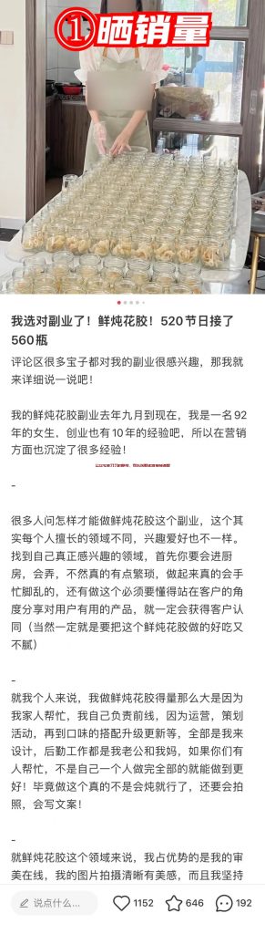 一类是图片的形式,以高颜值图片吸引点击,分享产品的制作过程、原料产地、用法、市场需求、体验感等,如下图这样