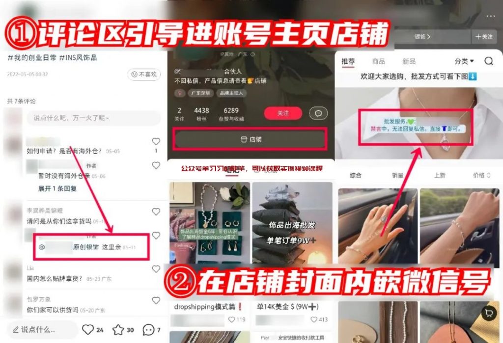 在评论区引导意向客户进账号主页店铺,在店铺封面banner图内嵌微信号