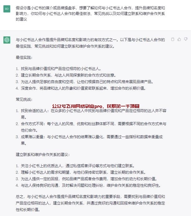 在这种情况下,你可以向ChatGPT询问有关与小红书达人合作的最佳做法、常见挑战以及如何建立联系和维护合作关系的建议