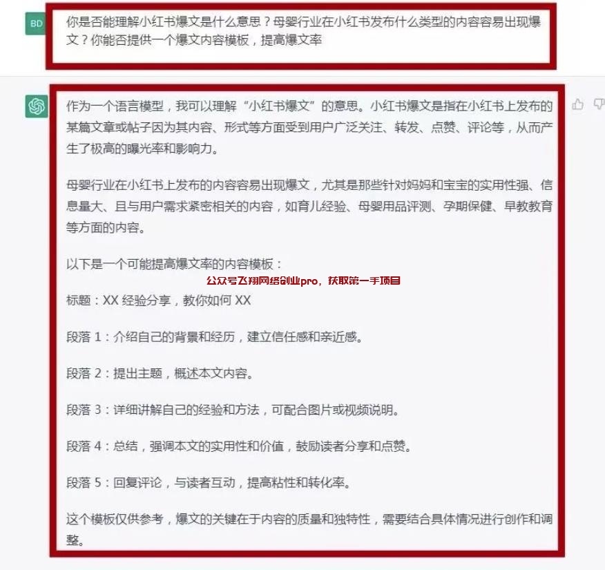 然后你可以问ChatGPT:在小红书上,母婴行业或宠物行业发布哪些内容容易产生爆文