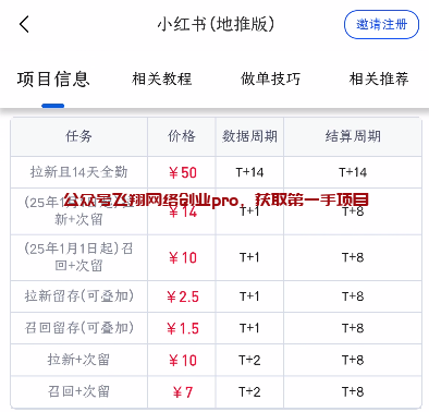 点击“小红书(地推版)”进去,在这里有详细的项目价格、相关教程、做单技巧等等