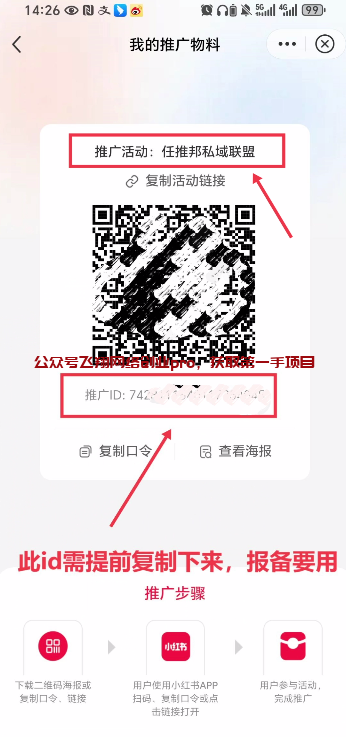 2、绑定+报备确认绑定后就去获取推广码,然后截图保存进行报备