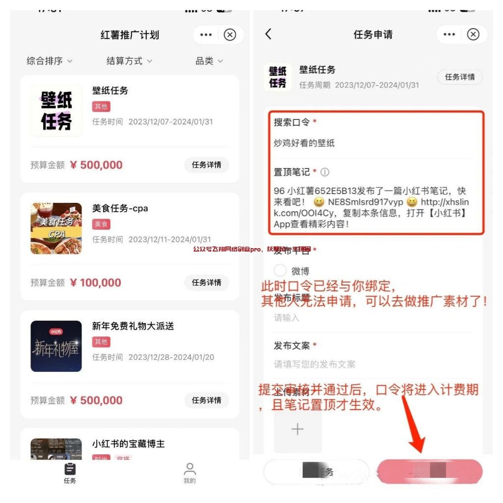只要新用户下载小红书app,输入你的专属搜索词,就会进入你的作品里,你就可以获得拉新佣金