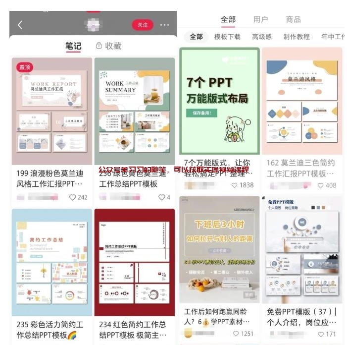 首先要准备小红书账号,账号越多越好,量越大越好,一个无线网最多可以连接三个手机,超过的部分就用4G或者5G流量去登录,然后关注20-30位做PPT项目的同行,然后账号的头像、名称、签名这些,咱们直接借鉴同行的就可以了