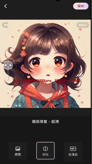 接下来我们用这个wink优化图片的分辨率,因为下载生成的图片可能分辨率有点低,不是那么高清,我们就需要用到这个软件来进行把它这个画质给它优化,打开软件有一个画质修复,我们点击立即体验,把刚才电脑下载的q版的素材导入进来,然后给它画质修复一下,半分钟左右就修复完整,它的这个画质修复的非常棒,点击保存。