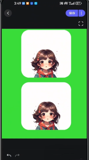 接下来给它复制一下又搞到下面过来,一模一样的大小,把上一步的头像添加到这个白色框底里面去,这个绿色的一个背景有点丑,大家在做的时候可以换其他颜色的,添加文字,比如真的好治愈,放在上面的位置,这就是用美图秀秀制作图文卡片这样的一个教程