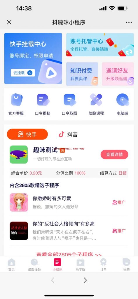 你们在这个小程序菜单里,找到快手挂载中心,点进去