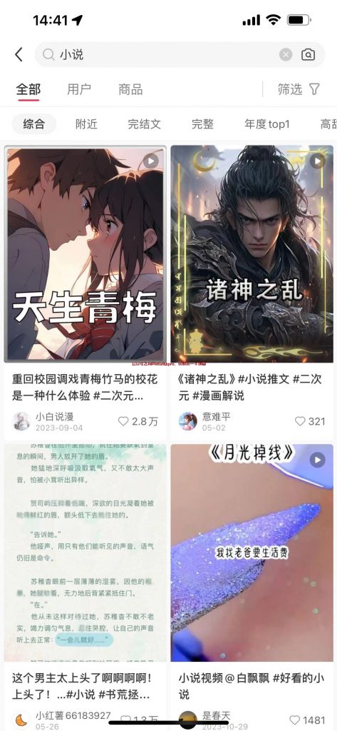 然后我们再去快手下载一些热门作品的音频,你可以搜索关键词:那些年火遍全网的小说