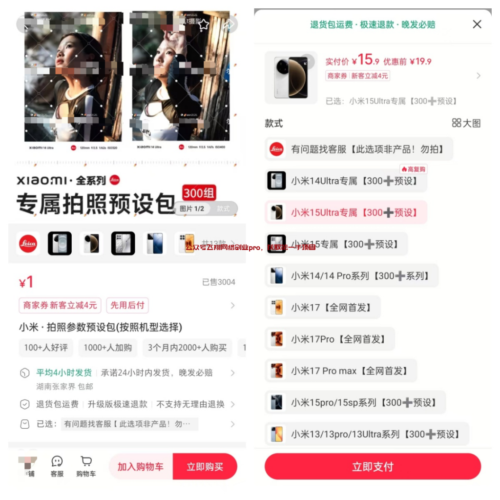 项目就是在小红书上卖小米拍摄预设,这个也算是小红书虚拟的一个细分类目了