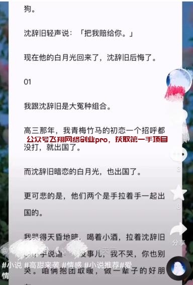 抖音作为目前最大的流量池,小说推文这个项目,已经有很多人在抖音上专职去做了,不过这个项目的授权渠道是困扰很多新手朋友的一个问题,那下面飞翔就来分享一下授权渠道和如何做这个项目的视频技巧