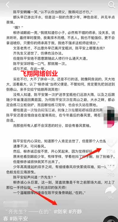 大家好,我是飞翔!今天分享的网赚项目是关于小说赚钱的,小说项目飞翔分享过很多次,这次分享的是结合短视频的玩法,具体怎么操作,我们先来看看下面这张图。
