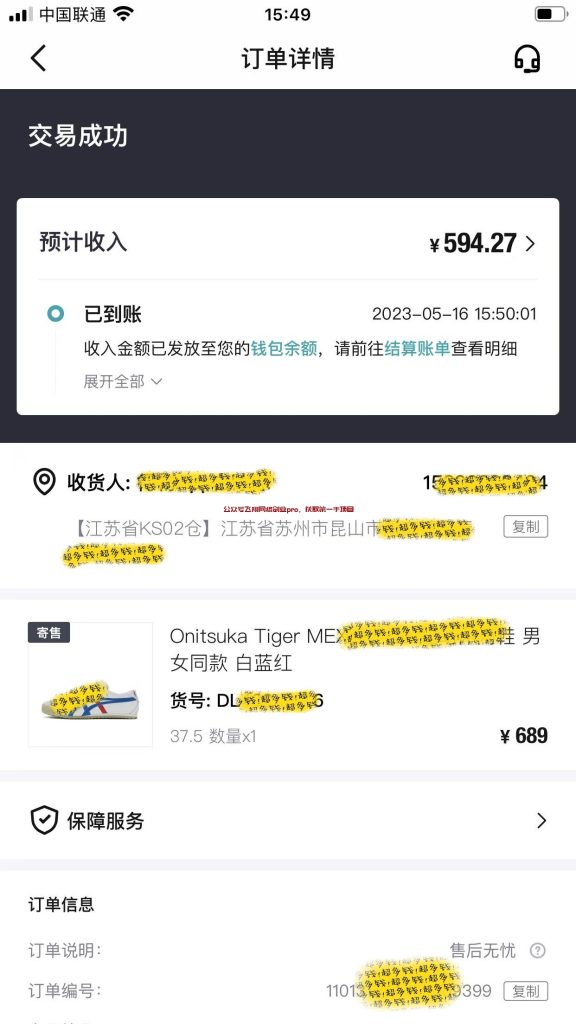 扣除平台一系列的手续费之后,实际获得594元,纯利润达到250+