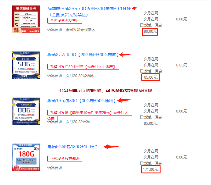 图中的这些手机卡的通用流量很多,资费也不贵,并且是3大运营商的手机卡,所以要推广起来,也是非常容易的