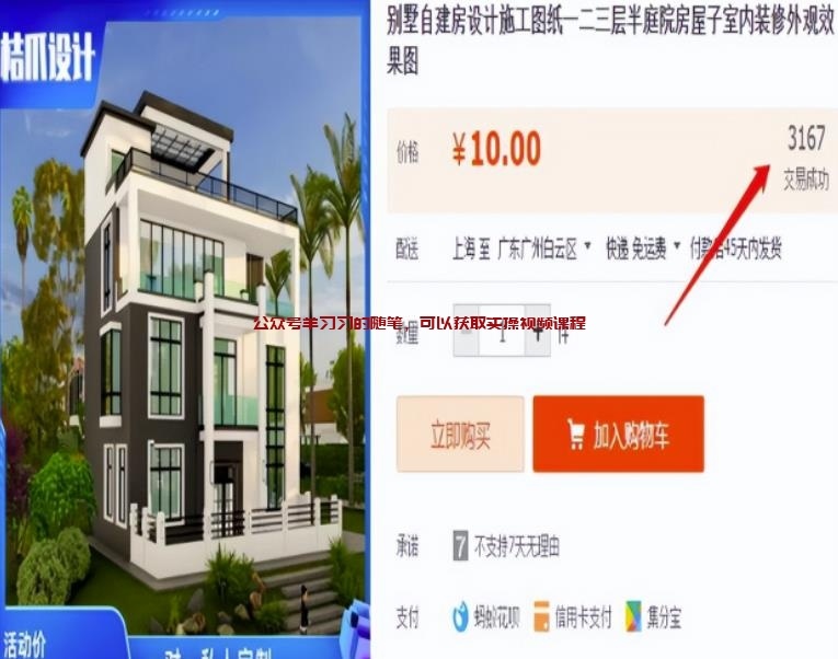 比如下图这个独立的别墅设计图纸,售价10元,月销量就有3000多,单个宝贝的收益就有3W多,如果我们可以整合足够多风格的设计图纸,我想日赚过千,是很现实的