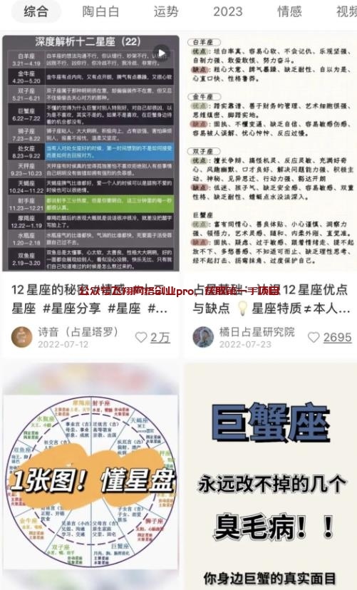 1、信塔罗星座的人,也信算命,但各个平台对这类内容就比算命要宽松太多了,可以完美绕过大部分的风控