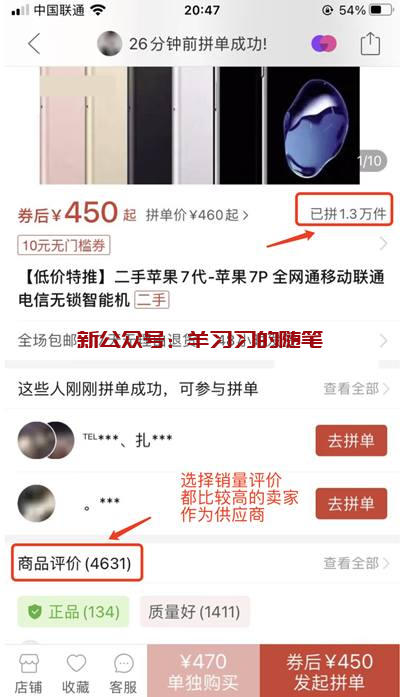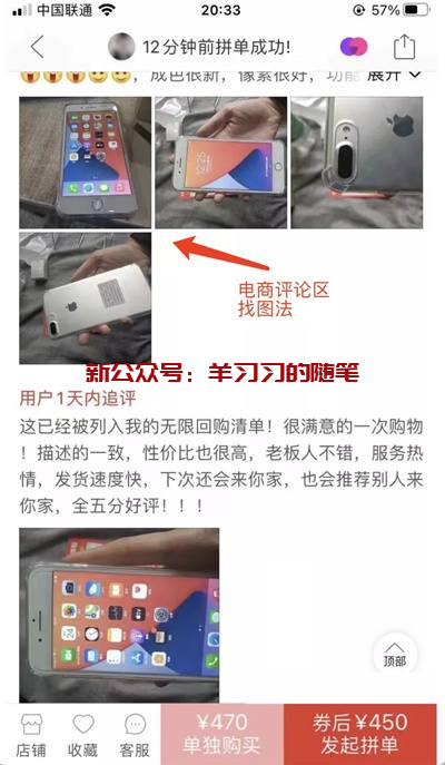 第二个方法就是打开拼多多或者淘宝,搜索二手苹果7,找一家销量不错的店家,在其评论区找那些拍得比较好的买家秀图片。