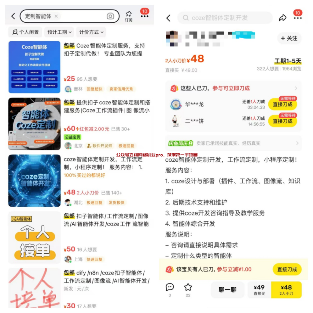 今天看闲鱼的时候,也看到有人在卖这个定制的coze智能体