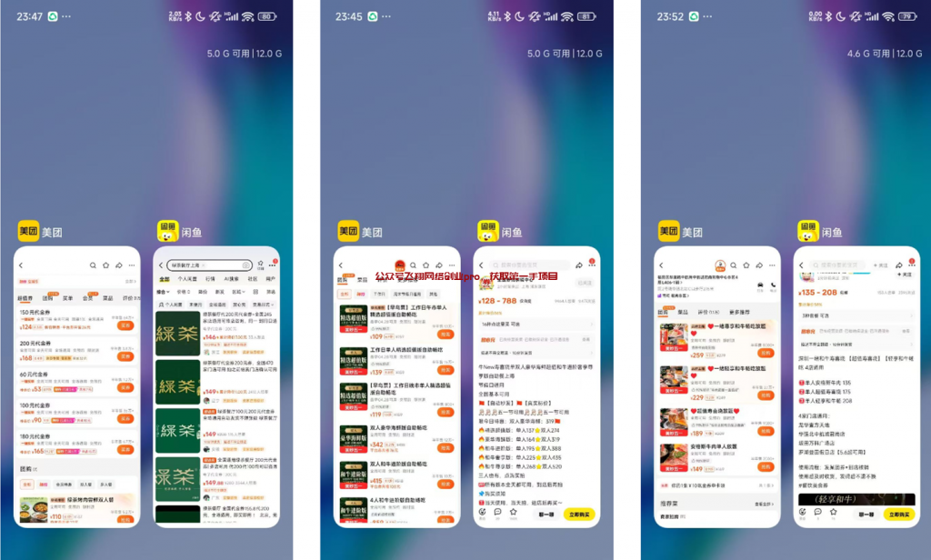 工具软件:美团app,闲鱼app,淘宝app
