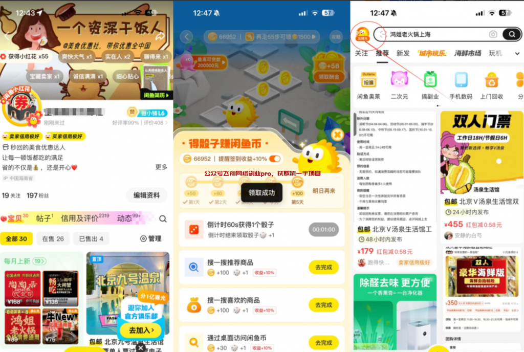 大家好,我是飞翔!今天给大家分享一个闲鱼卖券的副业小项目,利润还可以。