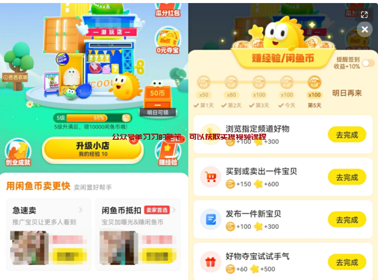另外飞翔在每篇关于闲鱼赚钱的文章中都会提到,闲鱼里每天都可以做任务,然后领取闲鱼币,闲鱼币可以用来曝光自己店里的商品,推荐给更多的人浏览,这个免费的功能,大家一定要掌握