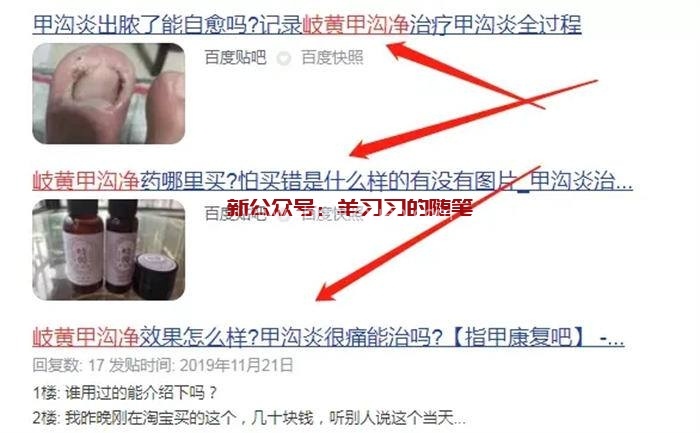 标题基本都是这样起的:岐黄甲沟净(品牌词)|甲沟炎怎么治疗除根?(长尾需求词)