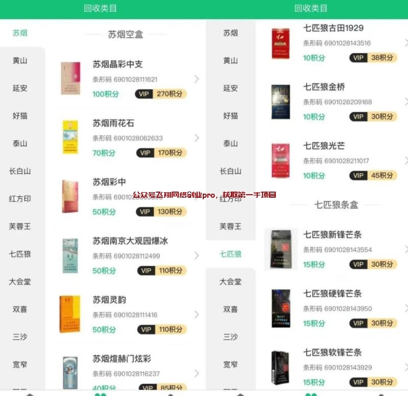 大家好,我是飞翔!今天给新手朋友们揭秘一下烟盒回收的项目套路。有的卖项目的会告诉你们,回收烟盒是为了获取烟盒里的二维码,现在各大烟厂官方,为了激励用户回购,从而采取扫码换积分的奖励方式,用户可以通过扫码获取到的积分,兑换相关的产品。