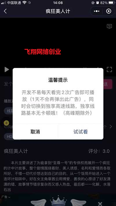 比如我扫码点开一个小程序,点击一部电影准备播放的时候,就弹出一个看广告的提示,是只有观看了广告之后,才能继续看电影。