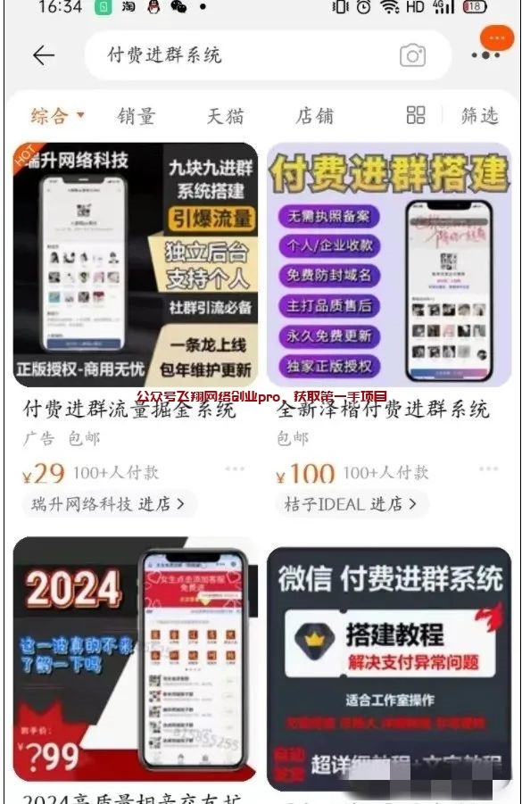 老样子,打开我们万能的某宝,搜索:付费进群系统