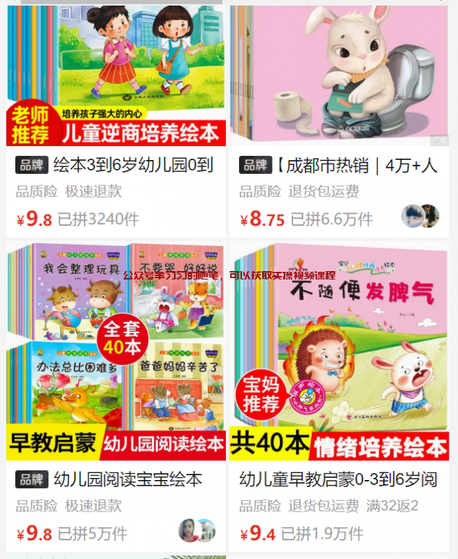 拼多多里的图书价格都非常便宜,像上图那种9块多的图书,我们可以收个15块的运费,这样能挣个5块多的差价