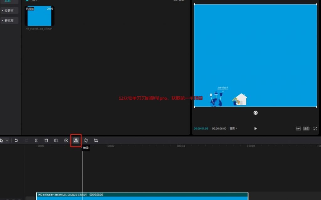 剪辑的方法飞翔就不多说了,B站上搜索,可以找到大把的免费教程,这里就提一个重点的地方-镜像