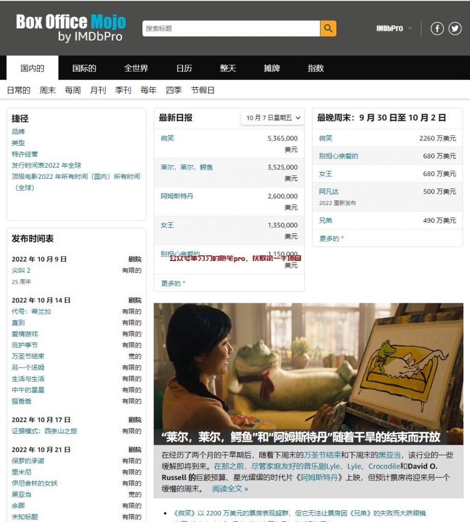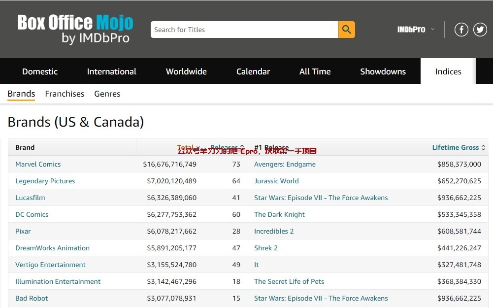 在youtube上发电影类视频,首先你要知道国外目前最受欢迎的电影是哪些,boxofficemojo这个站点是很多国人喜欢查数据的一个网站