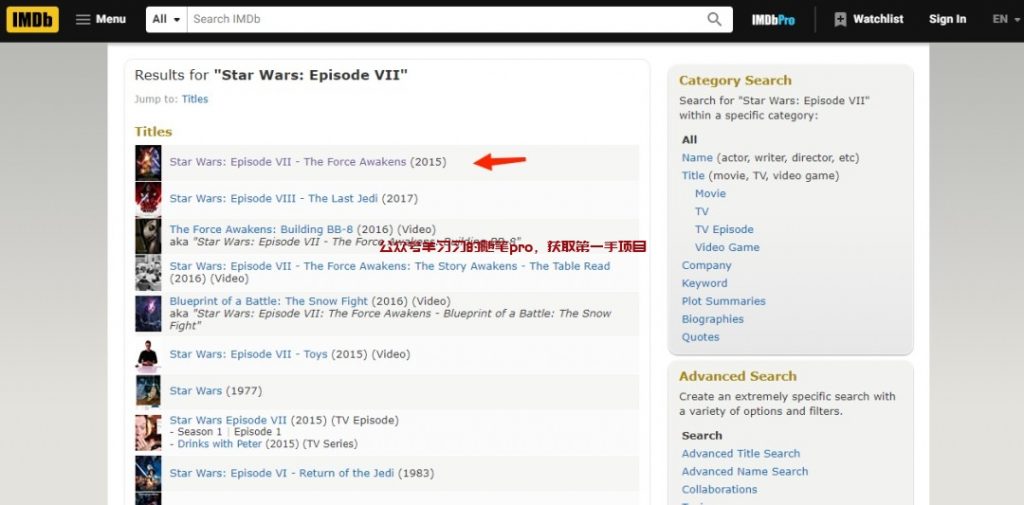 这里我们打开《星球大战第七部》这部电影,标题切记复制英文的