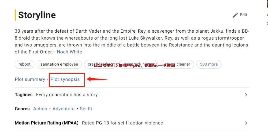 找到你需要的电影后,点击剧情板块就能看到该电影的简介了