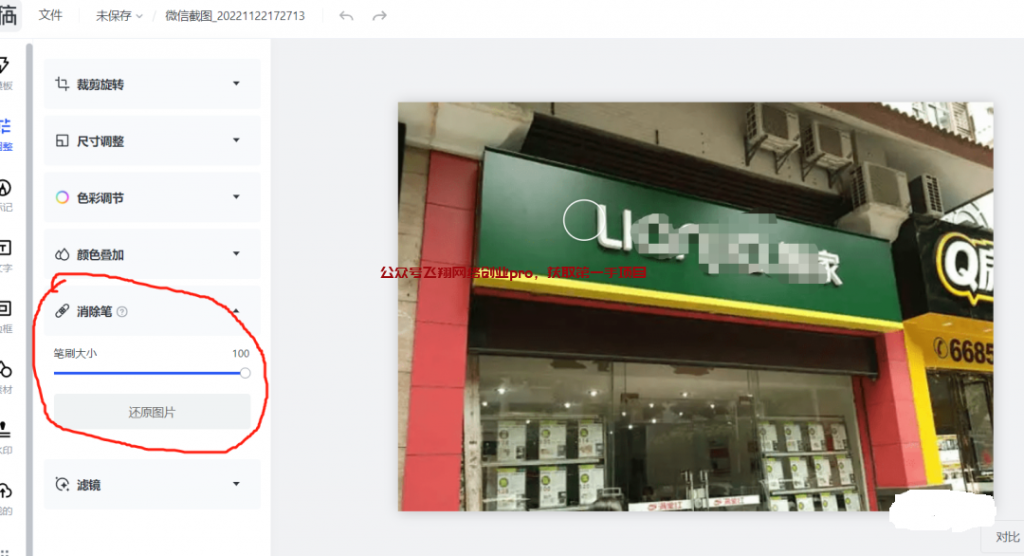通过消除笔的功能把上面这张图的文字整体消除,就这么简单的操作,不但简单,效果也不错,字体尽量选择视觉感更逼真的字体