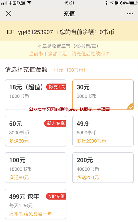 只要用户选择付费继续观看,我们就能赚到相对应的佣金。一般平台的抽成在10%~20%,相当于用户充值100块,80-90块是我们的利润