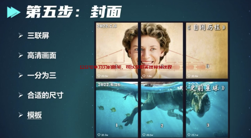 一般专门做影视解说的封面都是下图这种三联屏的,看上去比较专业,也很方便用户进行翻找