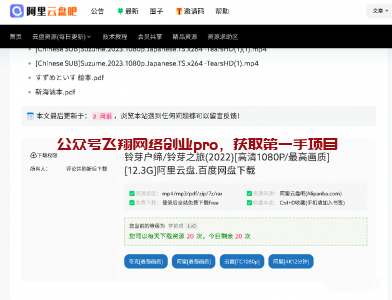 大家好,我是飞翔!今天和大家分享一个关于影视资源的副业赚钱小项目。最近挺火的电影《铃芽之旅》可能有些人看过了,但还是有不少人没看过,