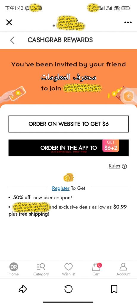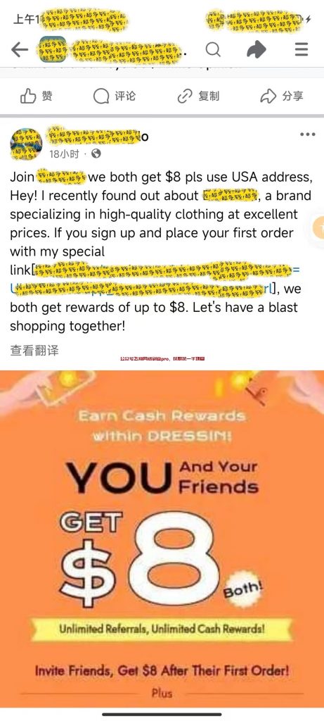 这是一个针对美国市场,做女装的APP,现在的拉新政策非常不错,就是推广的人和加入的人,双方都可以获得8美金的一个收益。比如我通过别人的推广连接,下载了这个APP,然后注册一个账号,买一件衣服,就可以获得8美金