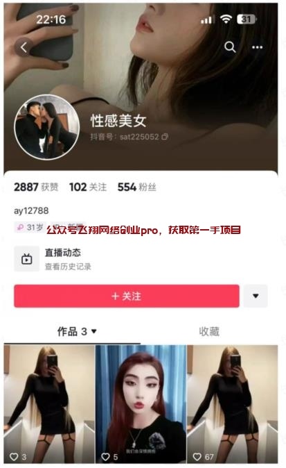 另外,创建新账号也存在风险。虽然美女+黑丝是一种吸引流量的方式,但并不意味着100%的成功。过去,你可能只需要创建10个账号,其中七八个账号能取得成功,一个月可能能赚取5万或者10万的收入。然而,如今你需要创建更多的账号,例如20个或30个,但是成功率却大幅下降,成功保住的账号只有7、8个已经不错了。