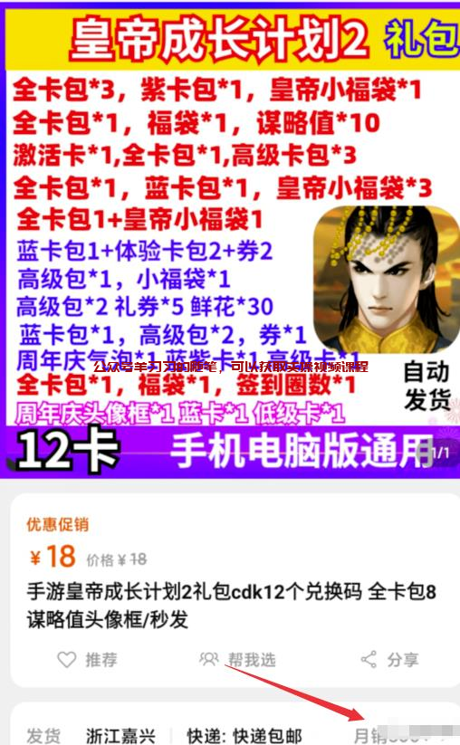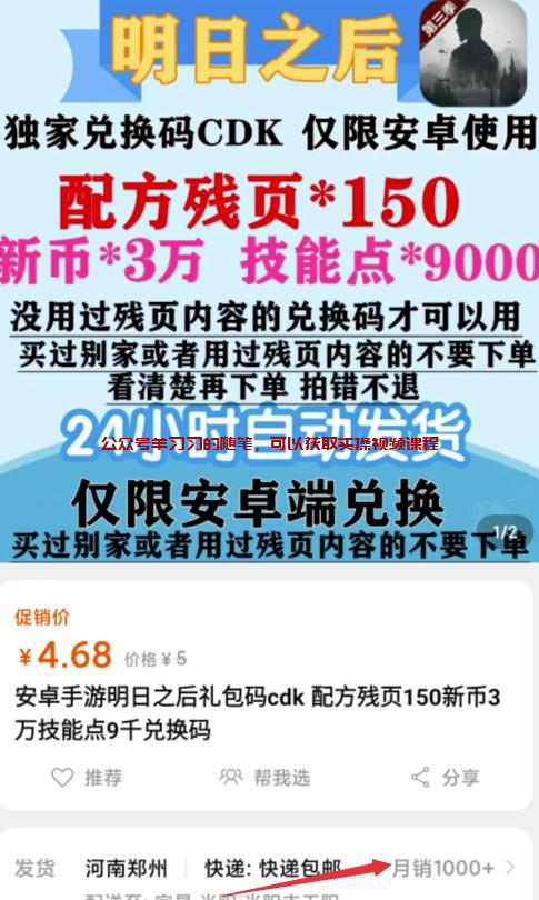 从淘宝上可以看到,一个简单的游戏礼包兑换码,月销量就达到了1000+,也就是说这个游戏礼包,一个月给这个卖家带来了4600多块的利润