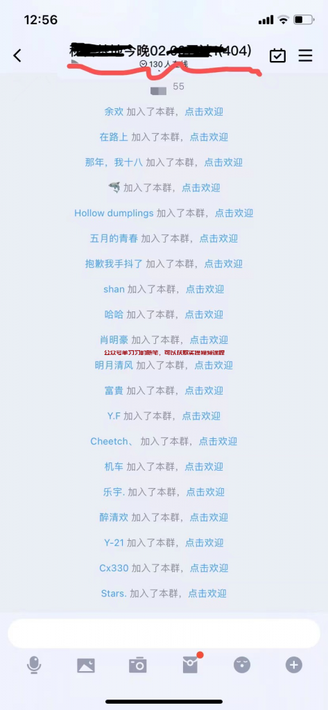 我加了他的群以后,直接通过了,我是55分进群的,进群以后,我在56分截屏的时候,发现这个群1分钟又进来20多个人,按照这个速度,只需要不到一个小时就能成为千人群了,流量非常的恐怖