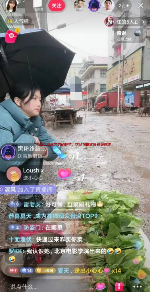 她小摊里的那几颗菜,就是全部卖完了,也差不多50块钱,但是人家通过直播的模式,直播间里的大哥看着这么一个娇弱的女孩子下雨天还要辛苦的摆摊卖菜,男人心中自有的保护欲就出来了,直播间里的大哥表示非常心疼小姑娘,纷纷刷礼物给她